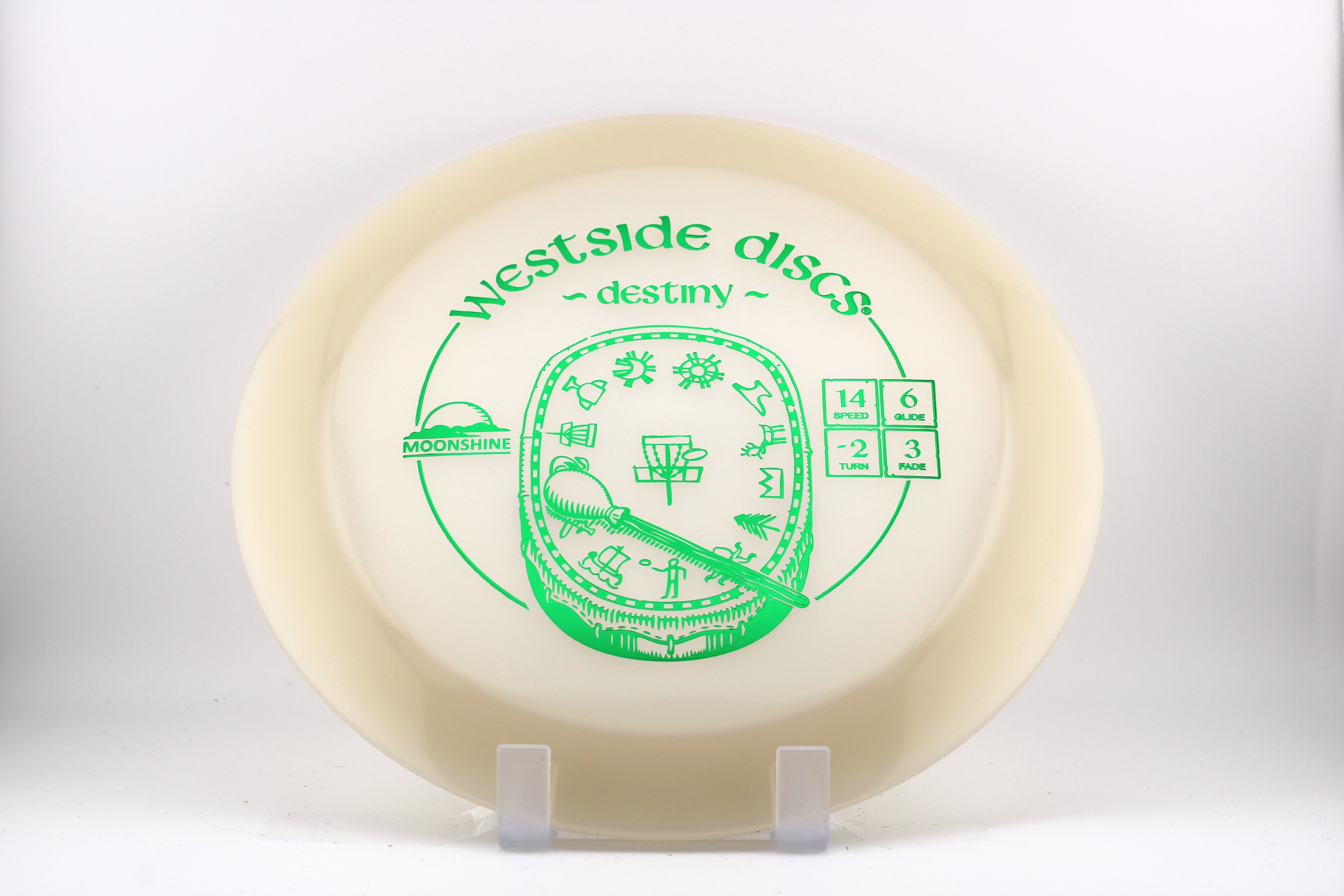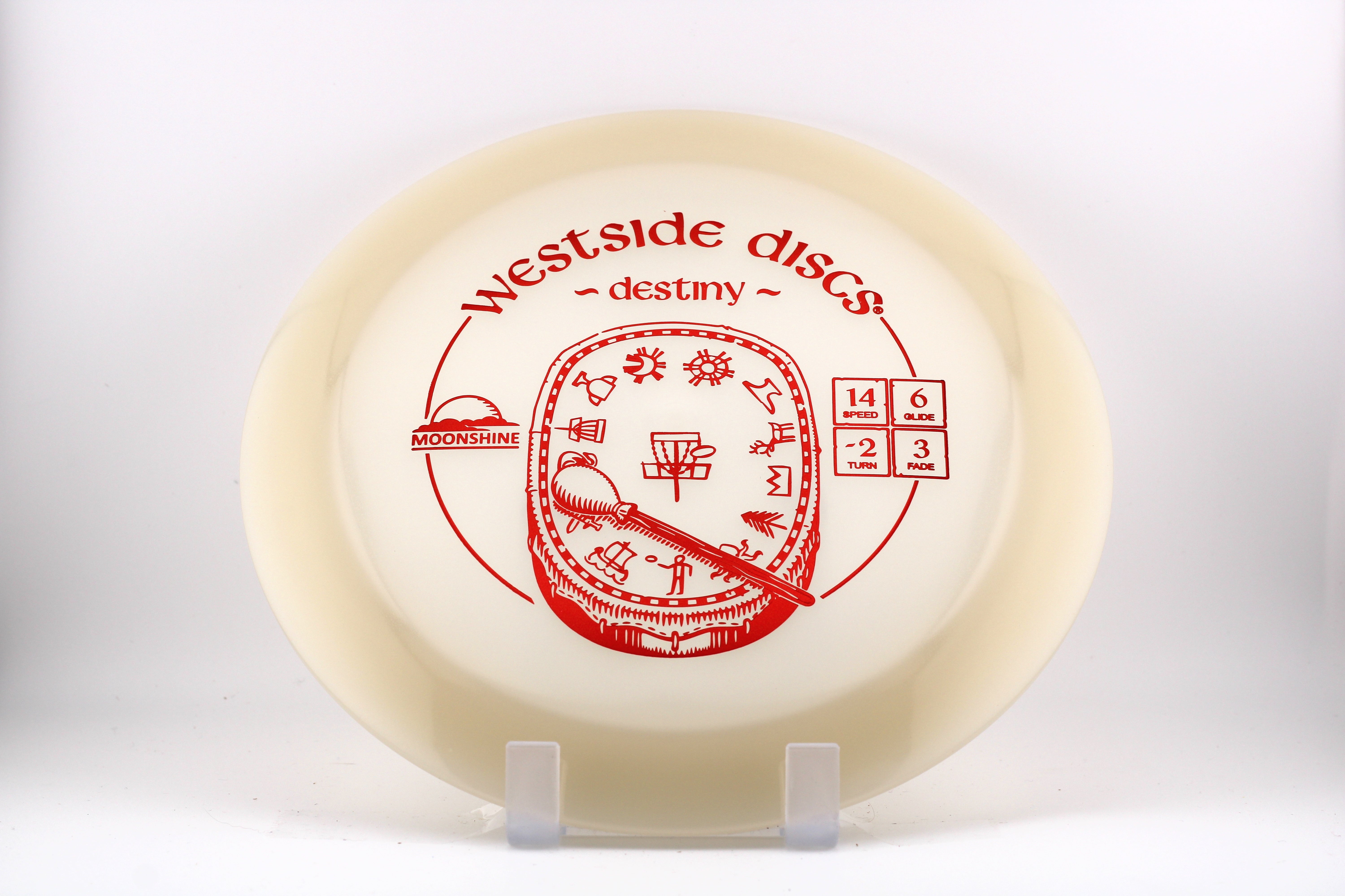 The Westside Discs Destiny is an understable super-high-speed driver. Two things are undeniable about this disc - speed and glide. This beauty really gets out there. For the higher arm speeds, a powered down throw will still get out to great distances. For the lower arm speeds, this will be your long-range bomber. Everyone can find a way to throw the Destiny. You will just have to walk a long way to go pick it up.