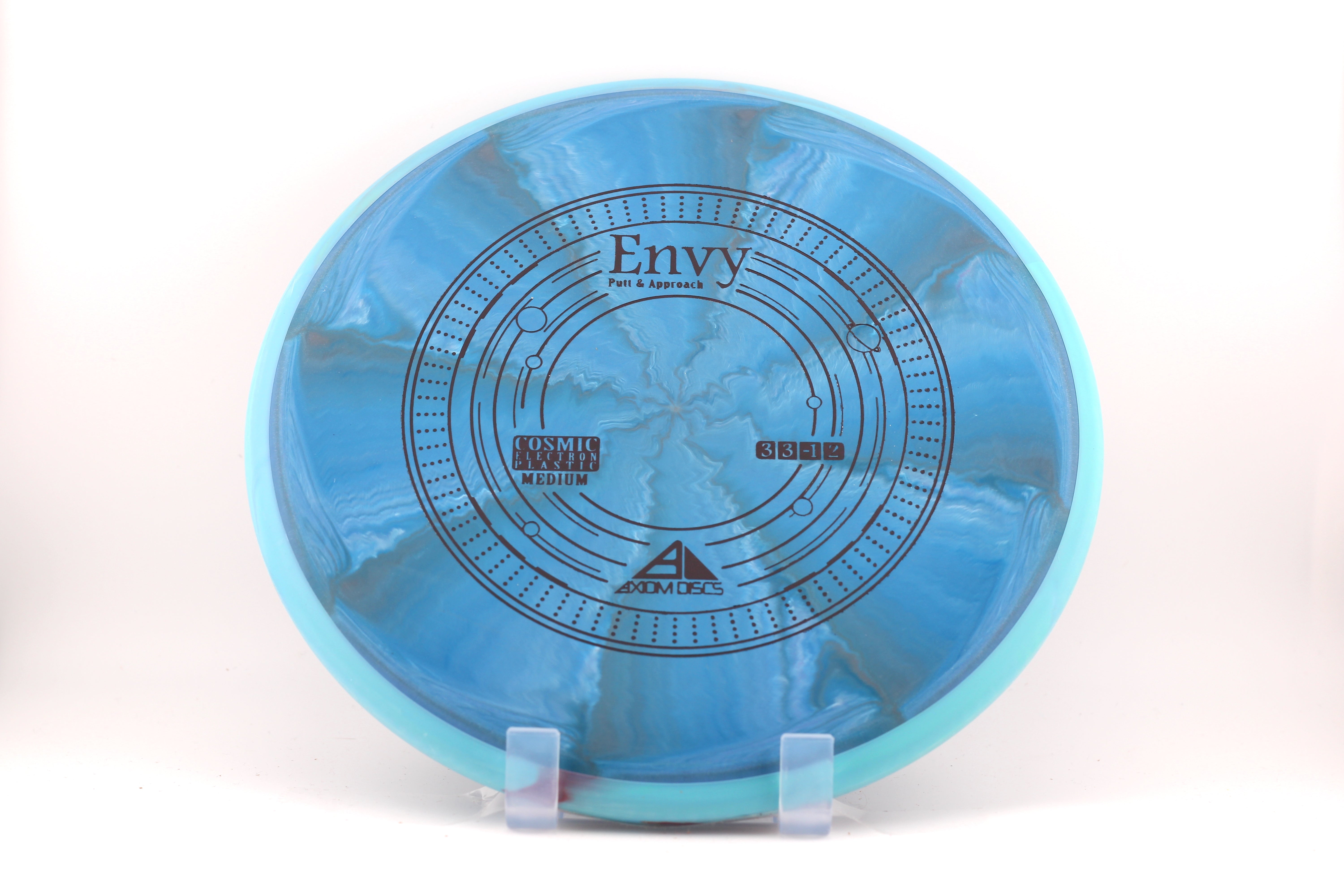 Envy – A slow, overstable putter than can handle power of all skill levels. The Envy is a disc that you can throw hard and get a nice straight flight with a moderate amount of fade. It is less overstable than the Entropy, but still plenty overstable for a putter. They have plenty of glide for a putter of its ilk and will be sure to find its way down lots of fairways of the tee. A gyro disc, like all of Axiom’s discs, this putter is meant to have a weighted outer edge to give it better gyroscopic capabilities. Test out an Envy and see what you think of Gyro discs and their best selling putter.