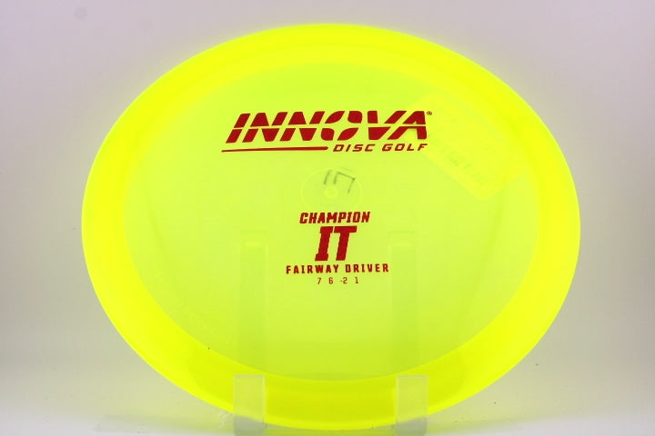 The Innova IT was developed to go straight and far, effortlessly. With ITs gentle turn and unmatched glide, tightly wooded fairways feel open and attackable. When another Fairway Driver would fade and drop, IT holds on the line of release and carries. Great for standstill and low ceiling shots that still need to get distance. IT also makes an exceptional roller disc, even when new.