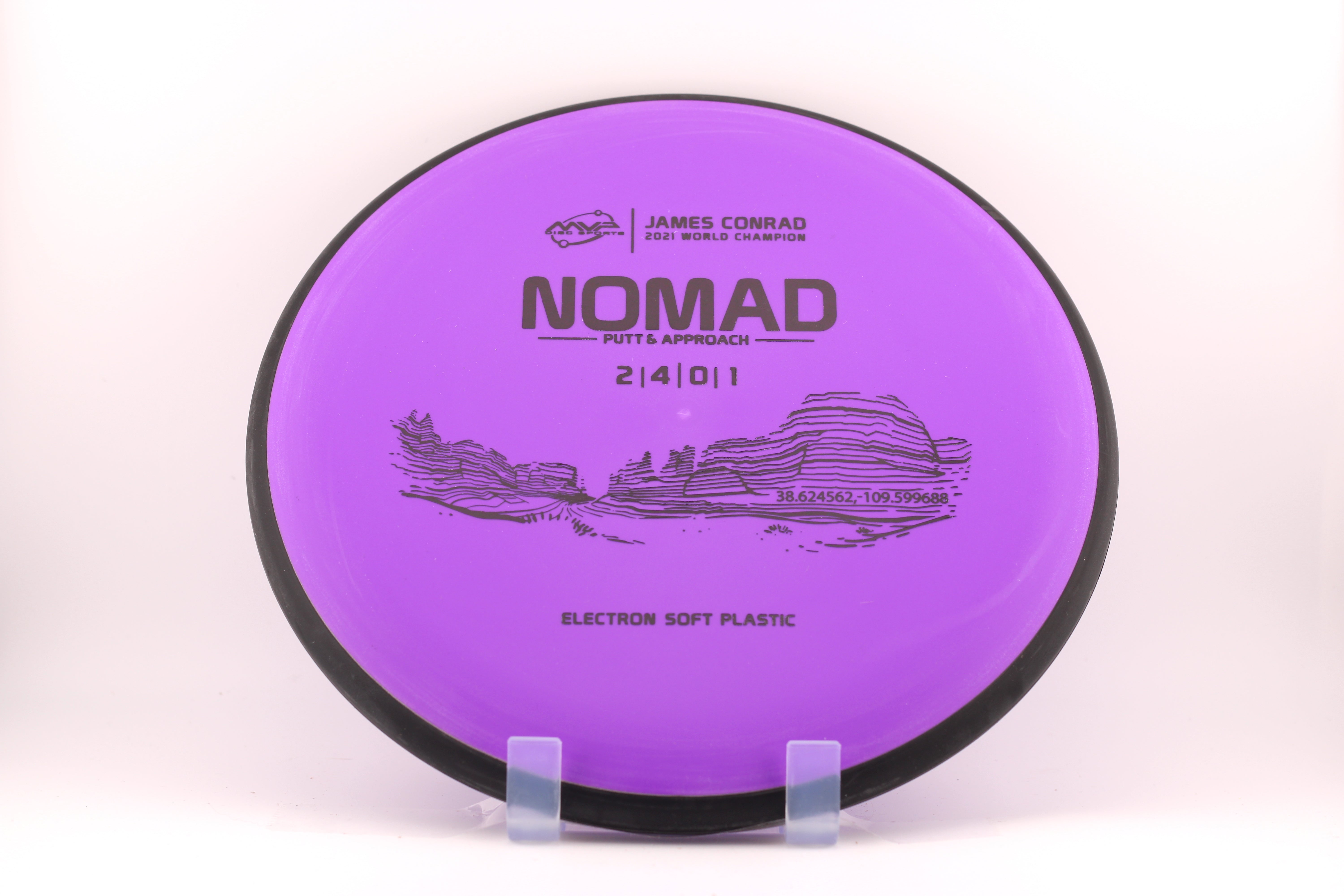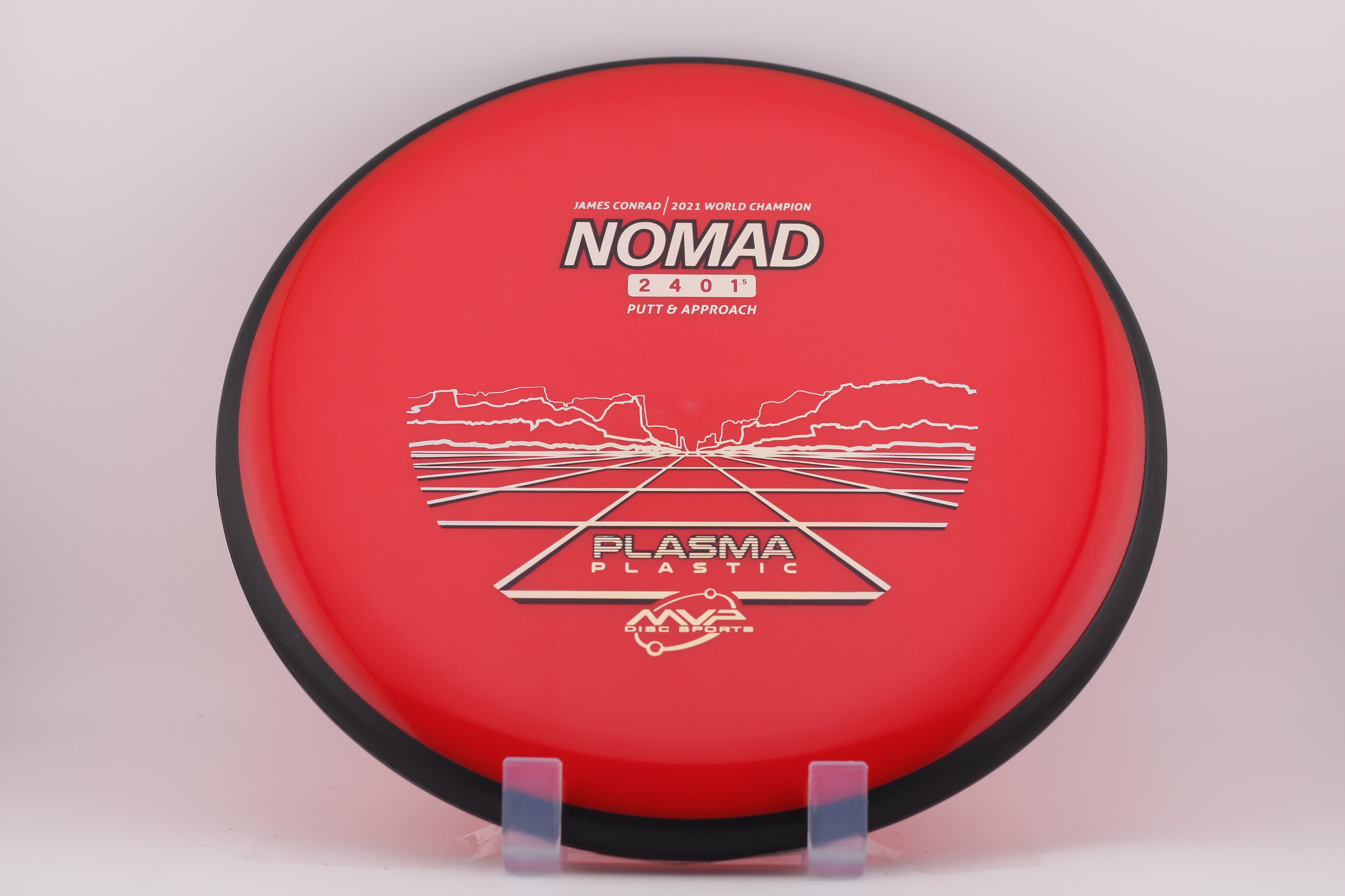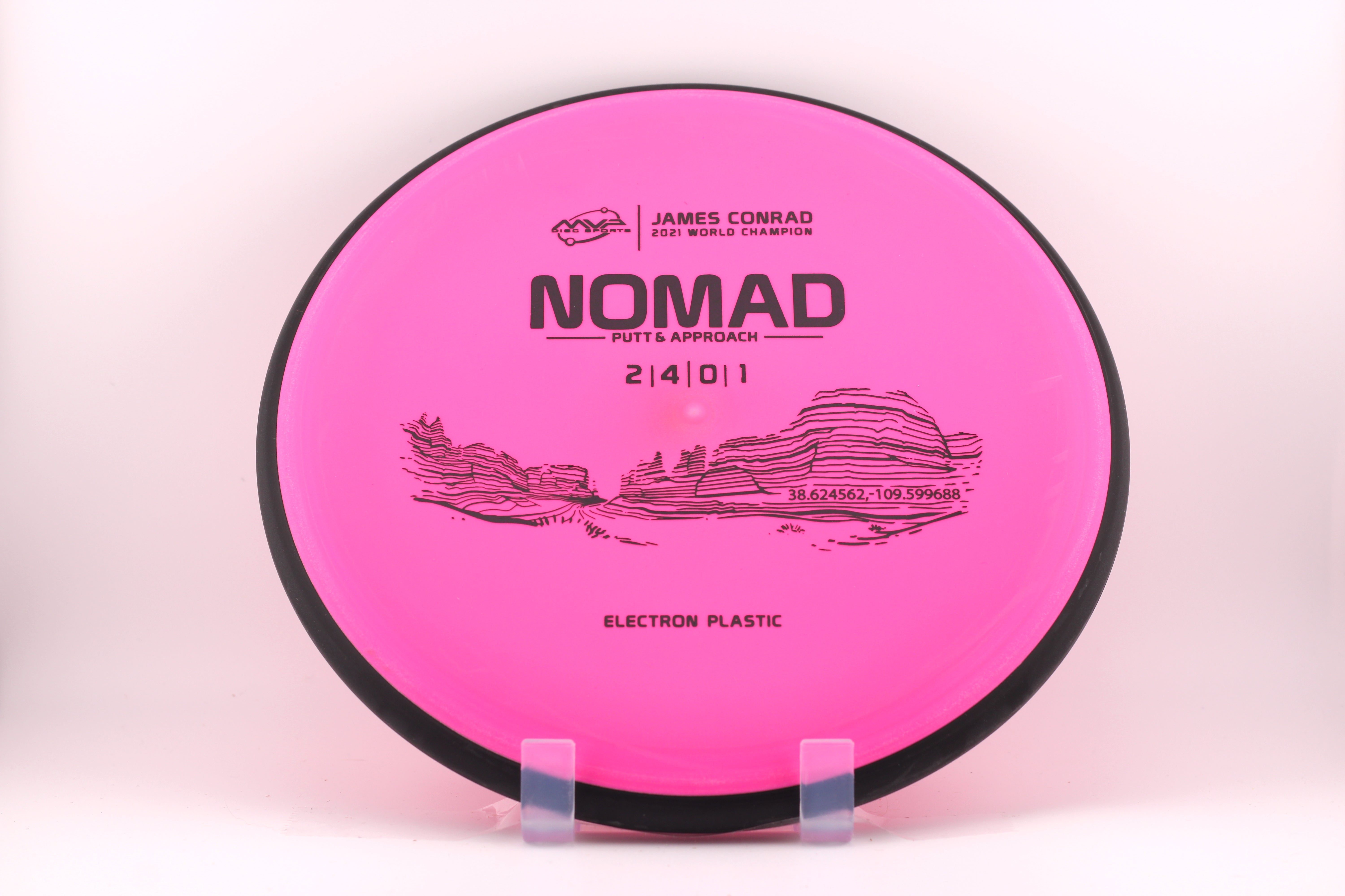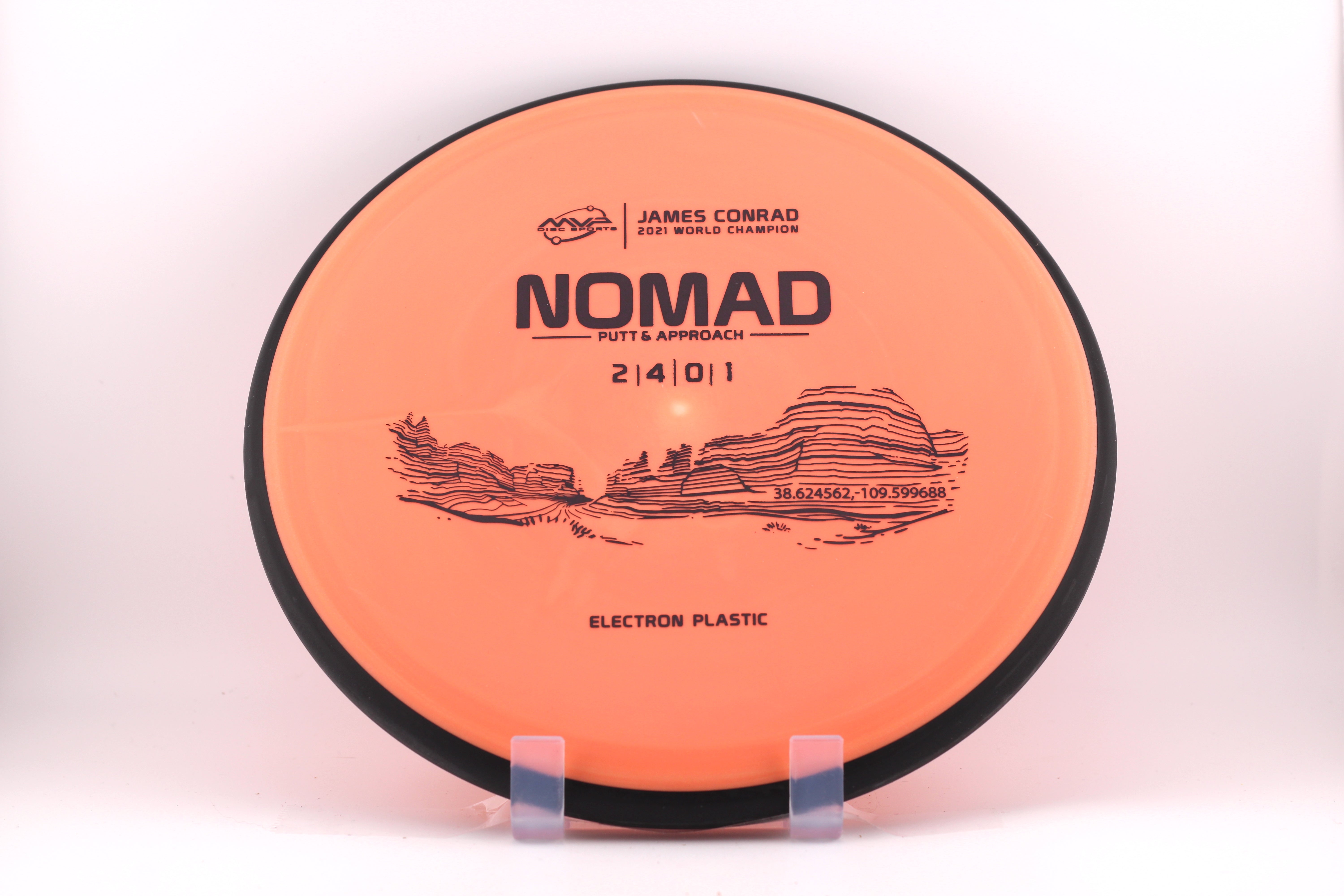 The James Conrad line is set to feature some of his favorite places to travel and tie in MVP's theme of science. This putt & approach disc was inspired by Park Avenue trailhead in Arches National Park in Moab, Utah.