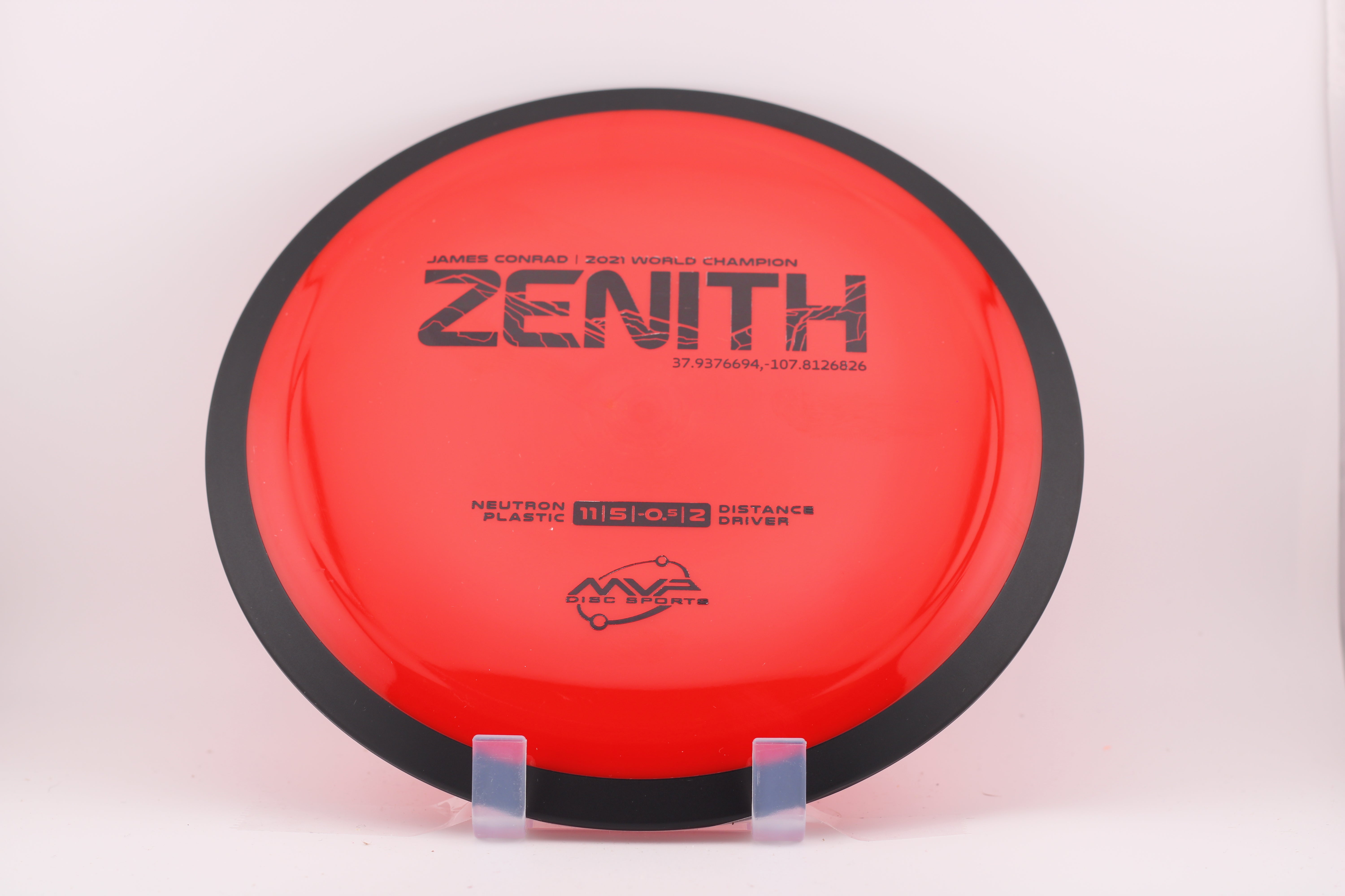 The Zenith is the first distance driver in James Conrad's line of discs. If you look up the coordinates on the stamp, you will find a secret, beautiful location.
