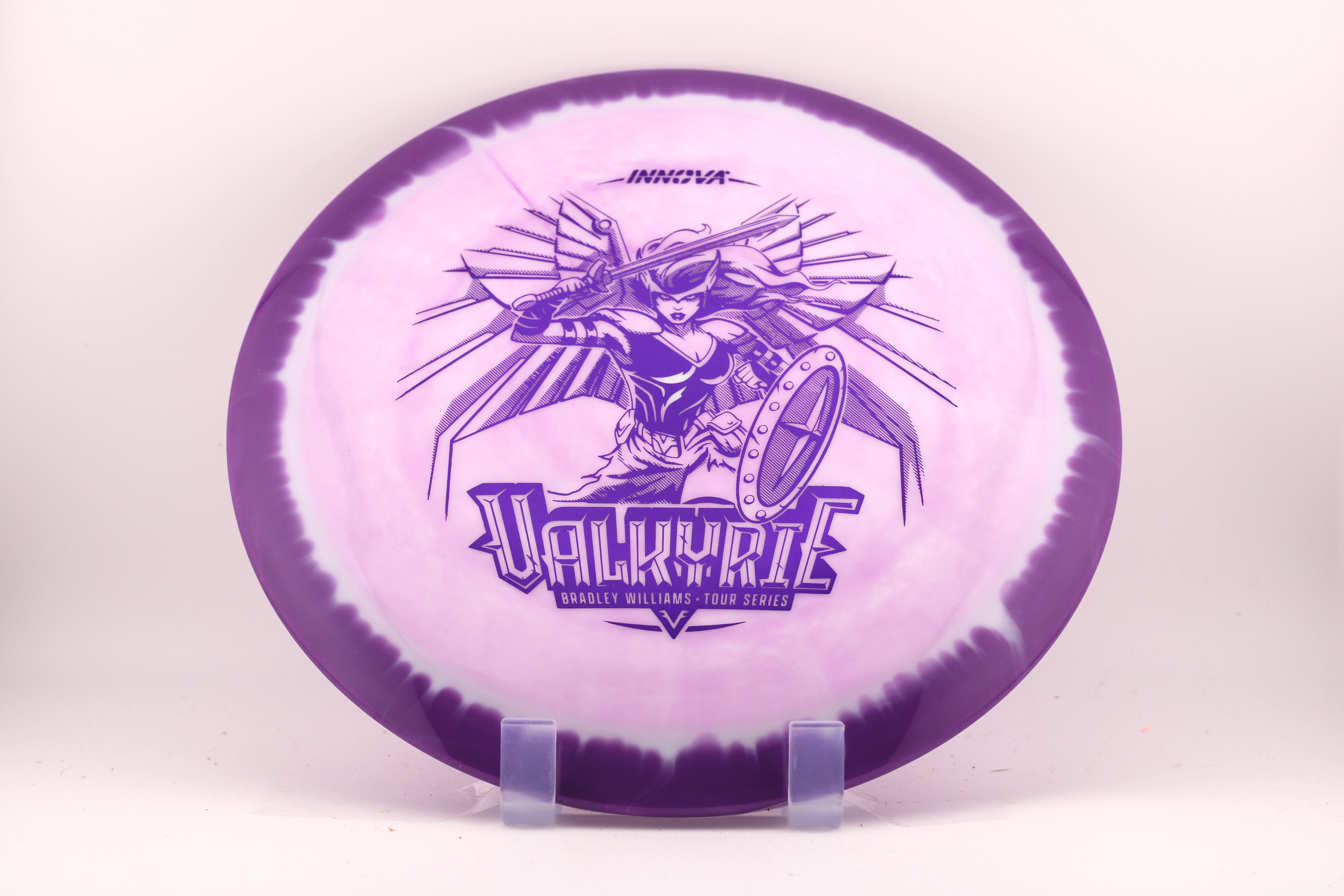 Molded in bright, durable, slightly more overstable Halo Star plastic, and offered in the sweet spot of the 165 to 169 gram weight class, Bradley’s Tour Series Valkyrie is designed to be beefy enough to be hit hard by power throwers, yet smooth enough to have mortal arms produce big, controllable distance with a gentle yet predictable fade.