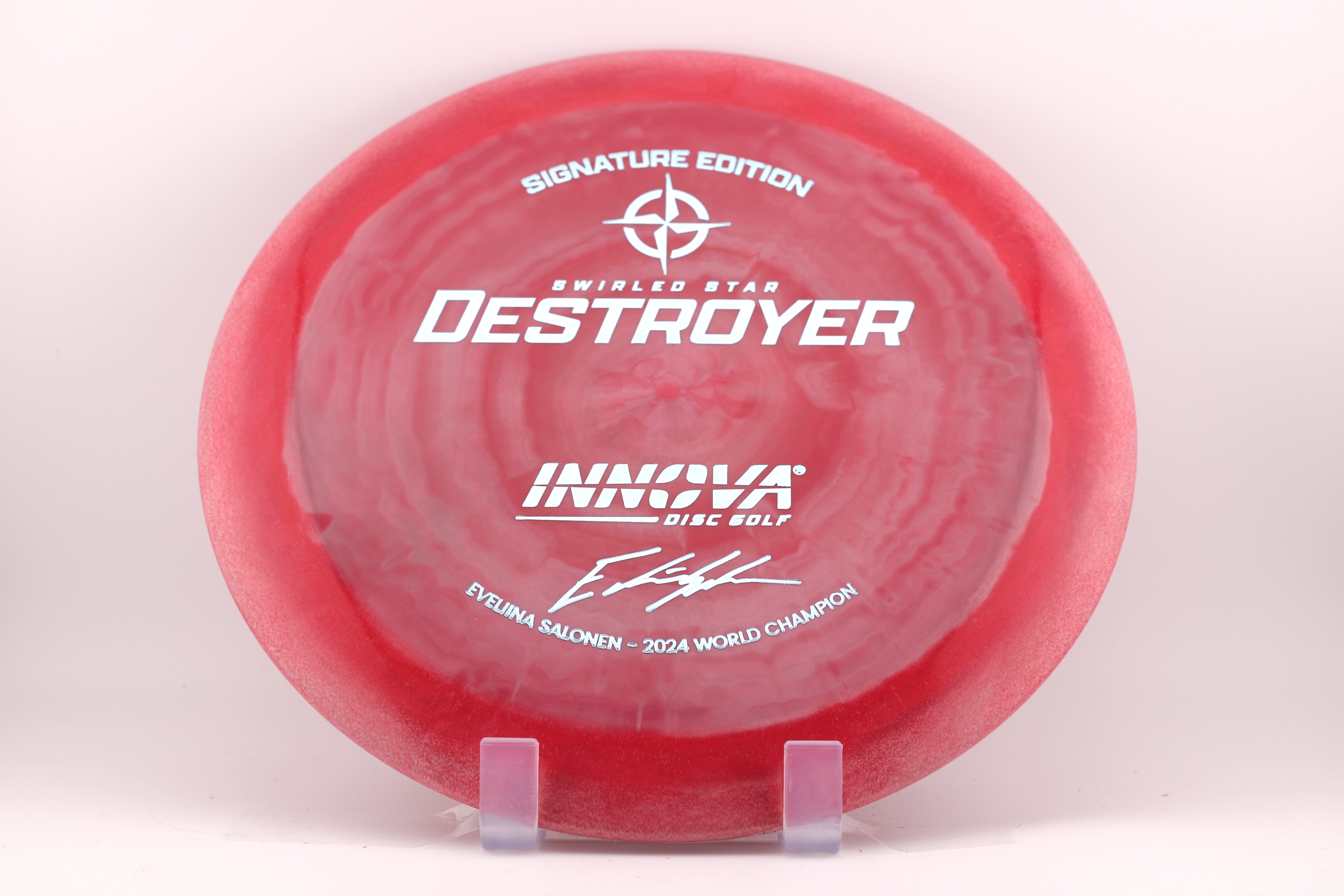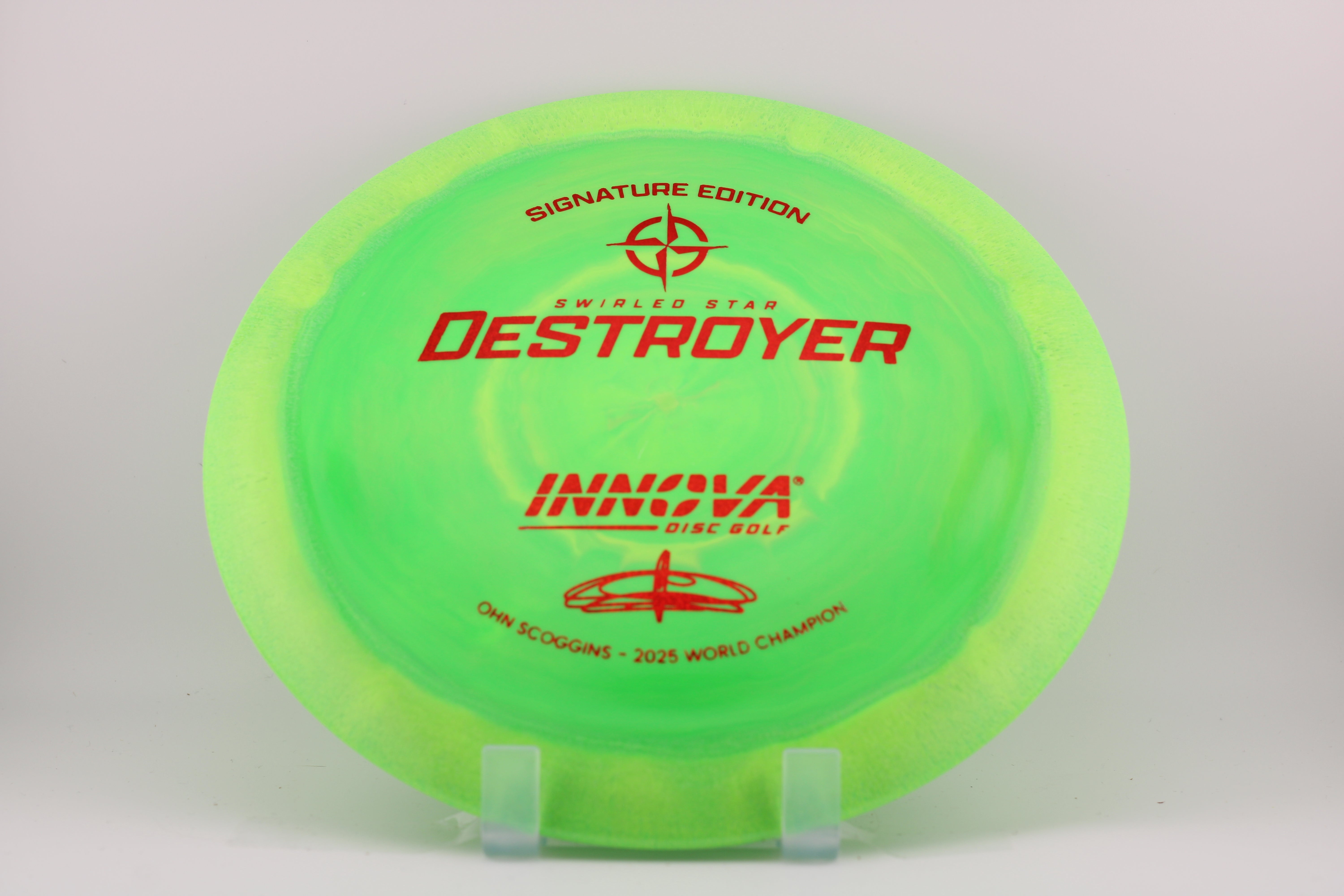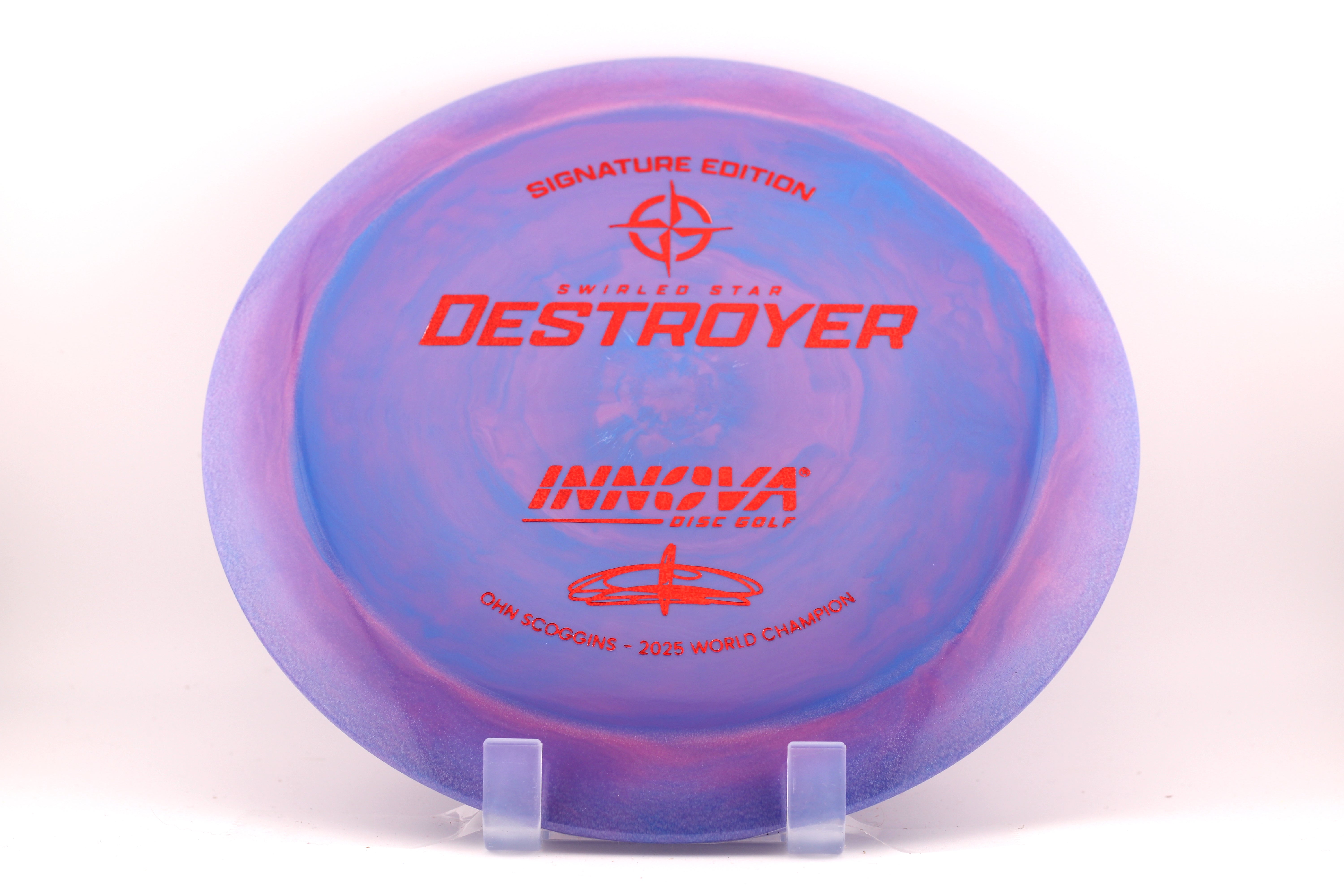 The Ohn Scoggins Signature Swirled Star Destroyer—honoring her victory at the 2025 PDGA Pro World Championships. Featuring our gold-standard Distance Driver molded in a vibrant, swirled-Star blend with a minimalist, text-driven stamp.