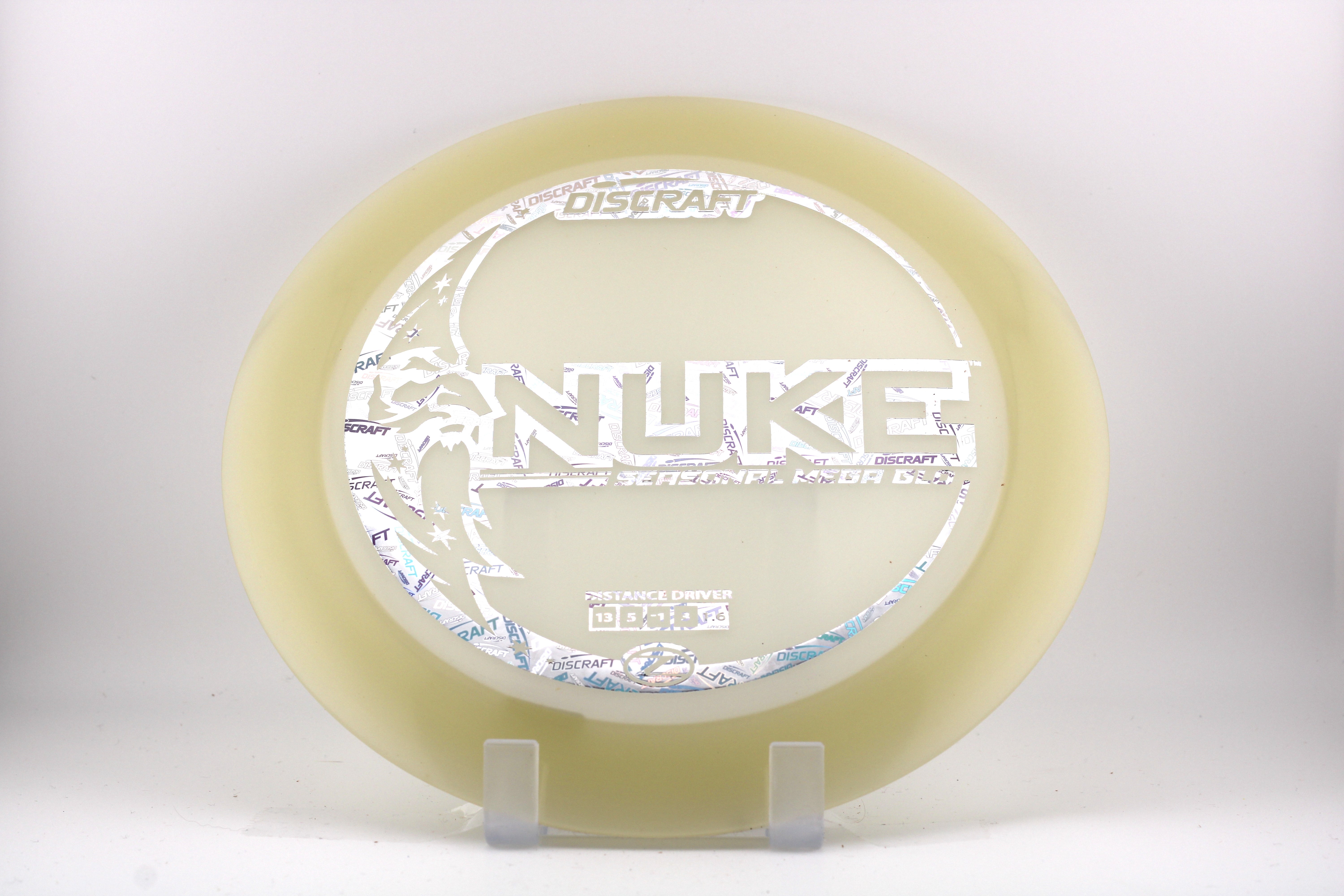 The Discraft Nuke is one of the most popular distance drivers in the world. This fast-flying driver has an ultra-thick rim (2.5cm) and maintains maximum speed for a long time. While this disc is ultra-fast, it is relatively stable for power throwers and has a Discraft stability rating of just 1.6. The Nuke is available in all the plastics Discraft makes.