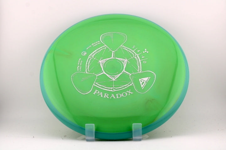 The Paradox is an understable disc that wants to turn. This is among some of the most understable midranges on the market and a disc that can fly on some very unique lines. For the advanced player, the Paradox will make a great disc for utility shots like rollers, flip-ups, or massive anhyzers. For the beginner, this makes for a great first disc that flies straight, hyzer-flips, or acts as a teaching disc.