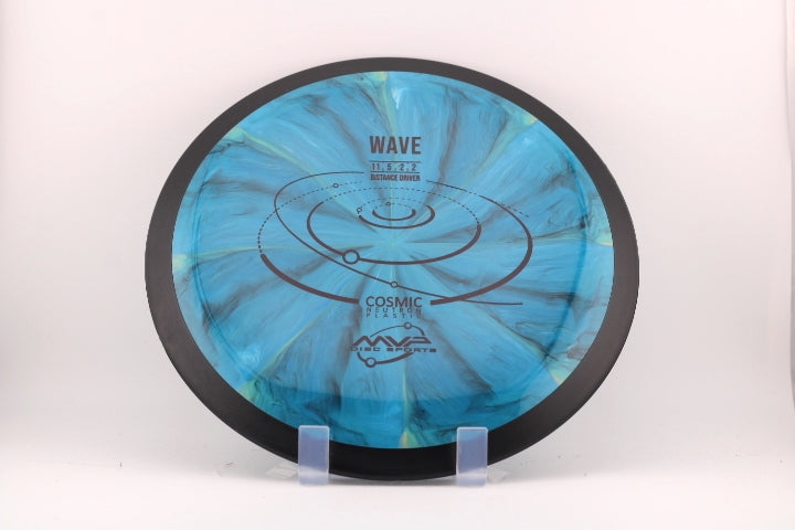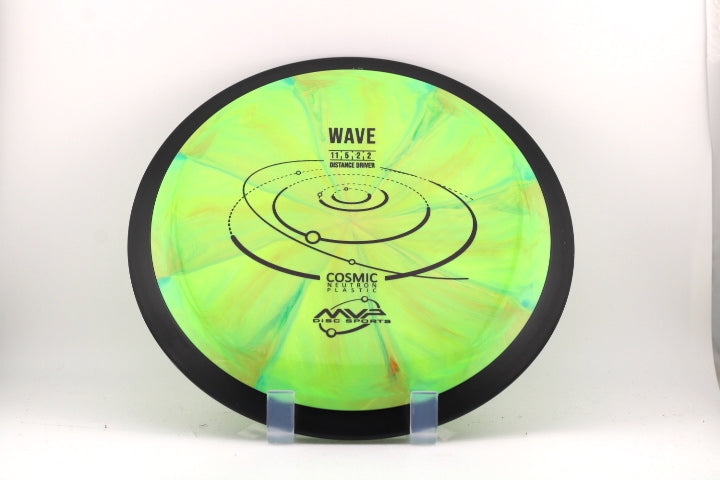 The Wave is the second wide-rimmed, high-speed distance driver released in the MVP line. This disc is moderately stable and described as a longer Inertia. For high-speed throws, the Wave will exhibit long gliding turnovers and hyzer flips. Low-power players will find the Neutron Wave to be overstable, but useable for a variety of different shots.