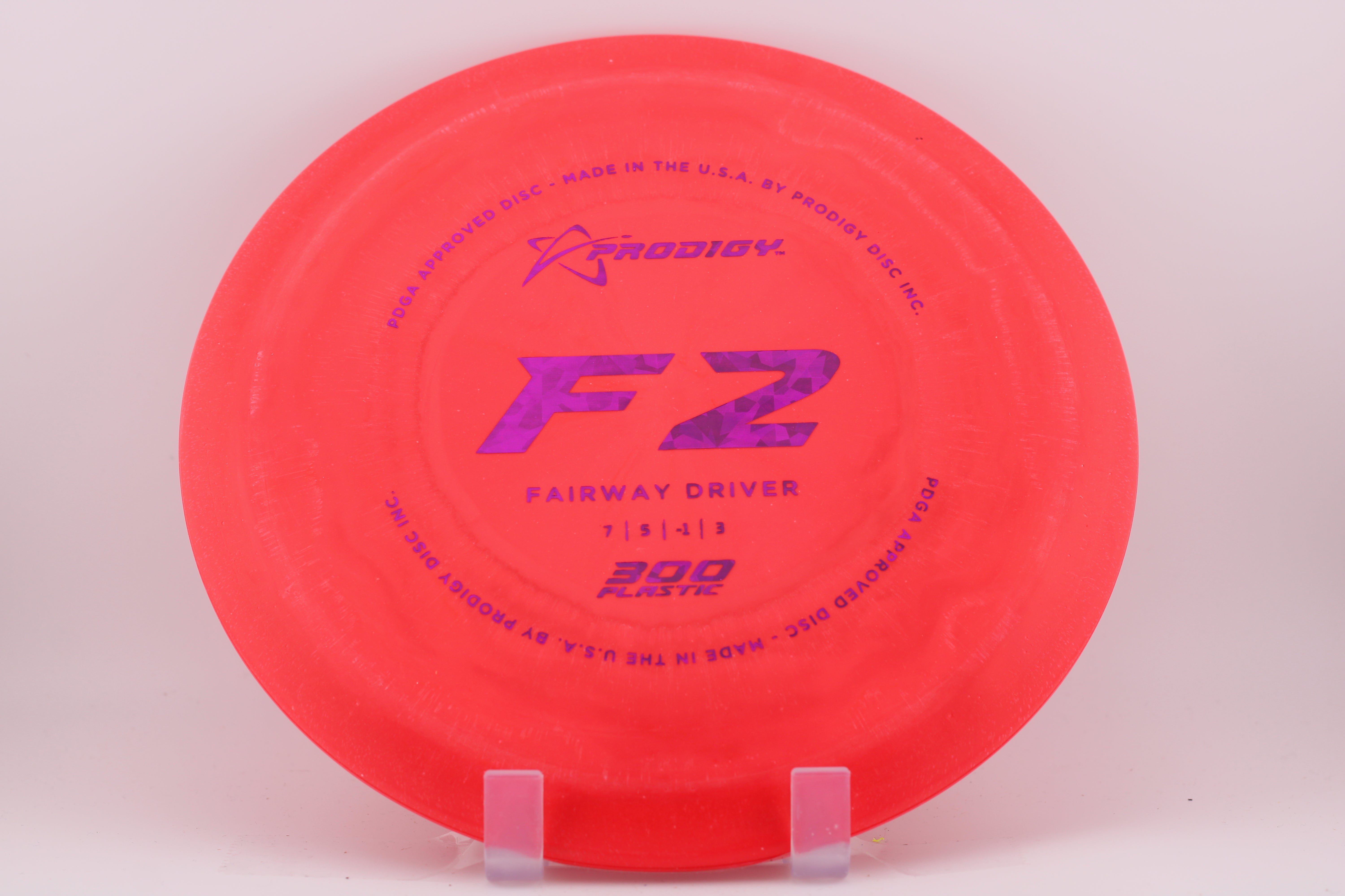 The Prodigy Disc F2 is a medium speed, over stable fairway driver with very predictable and controllable flights perfect for executing the most demanding shots.