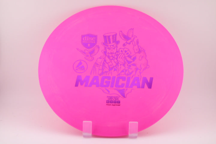 The Discmania Magician, formerly the Sun Crow, is a straight to stable fairway that can be used on a myriad of lines. It has a solid feel in the hand Bothe forehand and backhand. It is a disc that will hold whatever line you put on it. In the Active plastic it is a disc that will beat in nicely for big turnovers and rollers. Perfect for players of all skill levels! Discmania made the perfect starter fairway with this disc. If you are looking for a unique fairway in base line plastic then the Discmania Magician is the perfect disc for you to try!