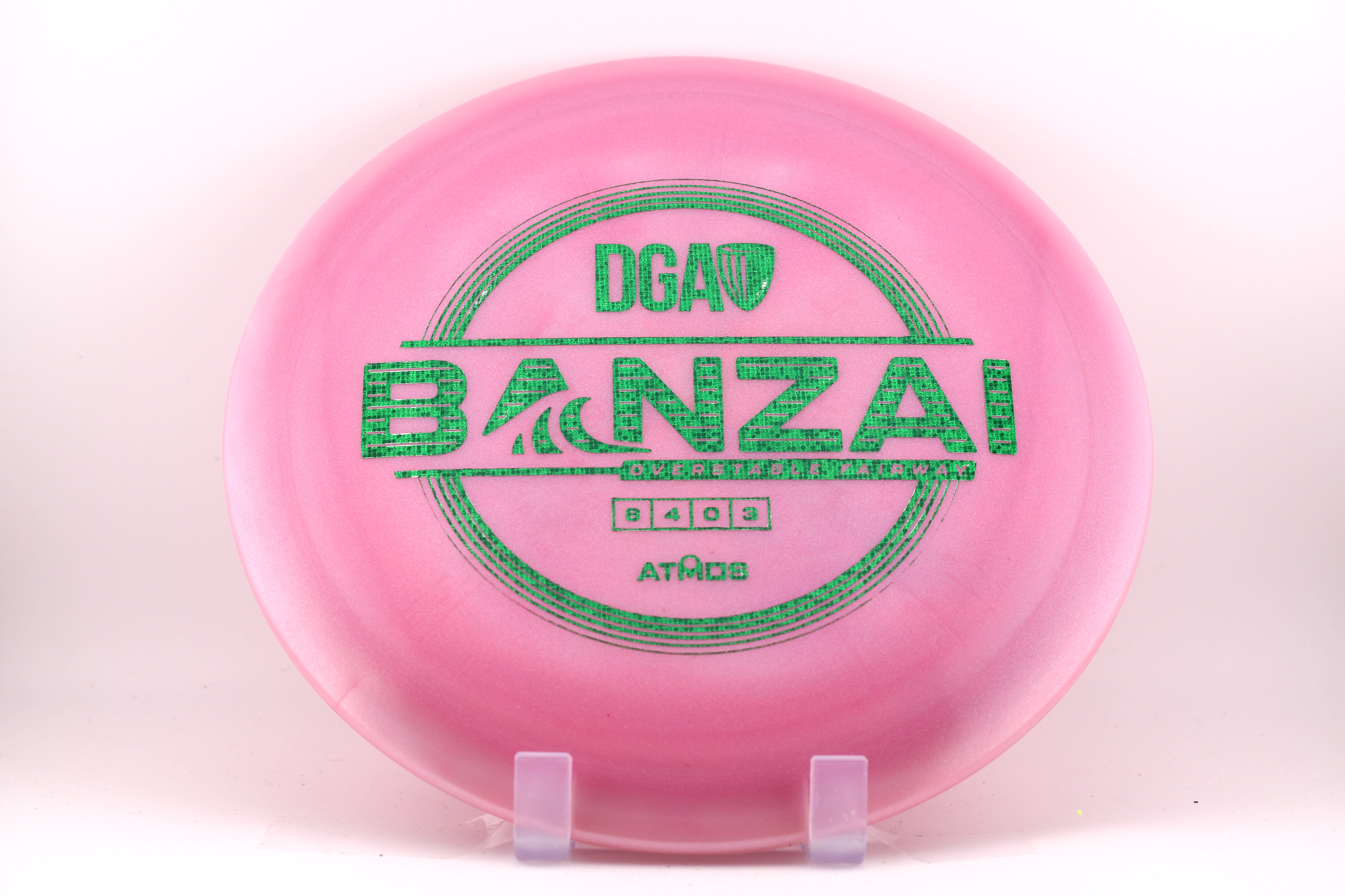 The Banzai can be best described as the overstable counterpart to DGA’s popular driver, the Pipeline. The names for both discs are derived from the iconic Hawaiian surf break, the Banzai Pipeline. With a straight flight out the hand and a dependable overstable finish, the Banzai will quickly become your new trusted choice for backhand or forehand fairway drives.