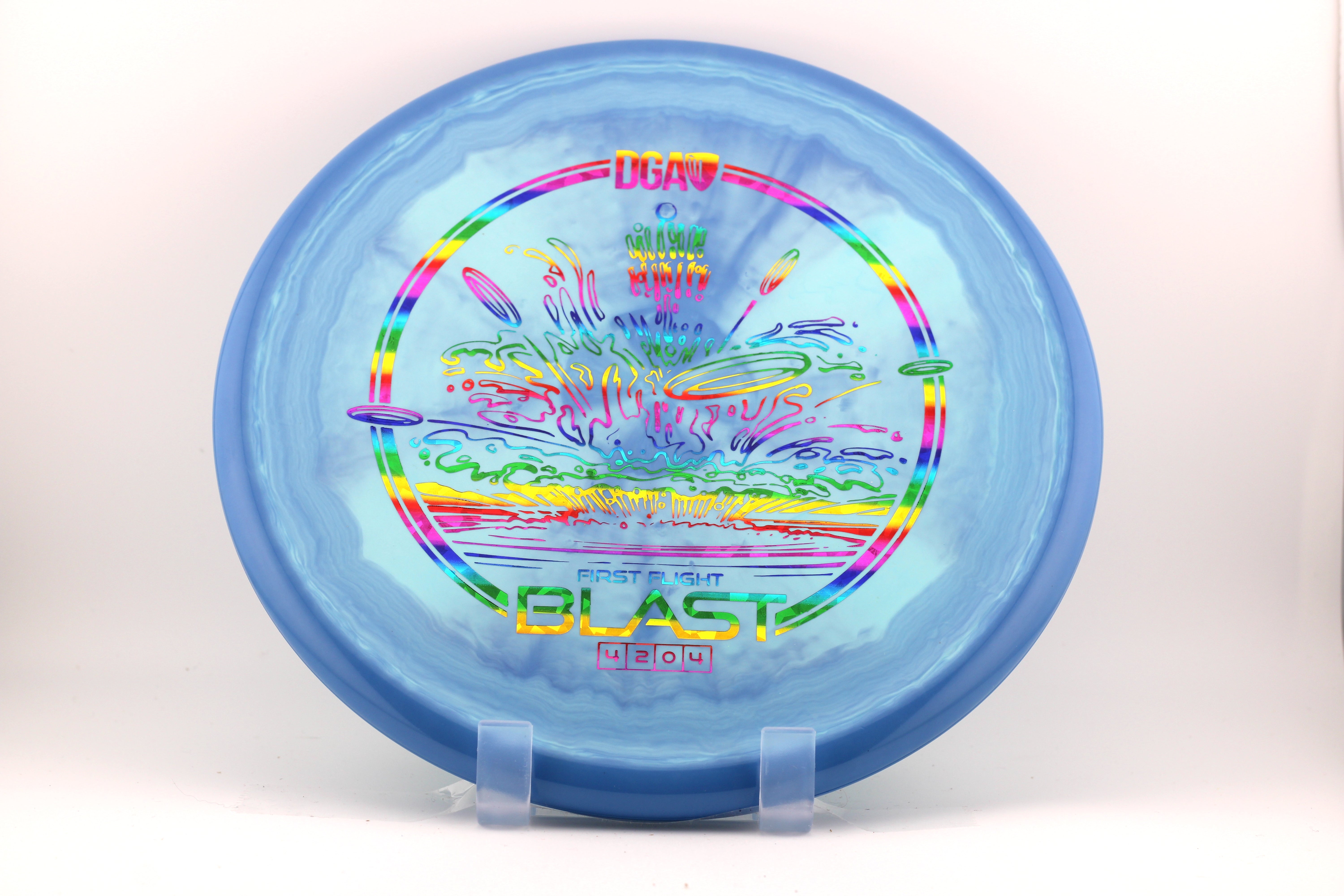 The Blast is an overstable beadless approach disc built with high torque resistance, low glide, and a confident fade at the end of its flight, making it a reliable choice for a variety of controlled shots. Its shallow profile, subtle thumb track, and slightly recessed flight plate offer a comfortable feel in the hand and a clean release for both backhand and forehand throws.