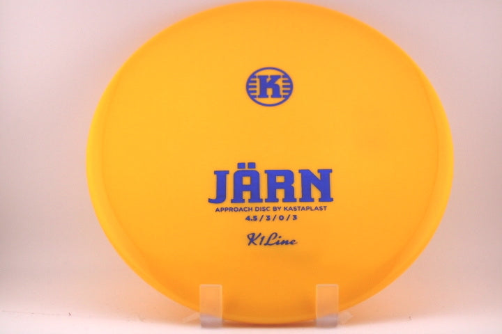 The first overstable approach disc in the Kastaplast Lineup, the mold feels amazing and is kind of a mix between a putter and a midrange. It has a nice overstable feel that is very comfortable on forehand and backhand grips. A few of us in the shop have thrown the Järn and it has a good combination of glide and overstability. It is a disc that can be thrown hard and it will not flip but it will push forward and hyzer reliably every time.