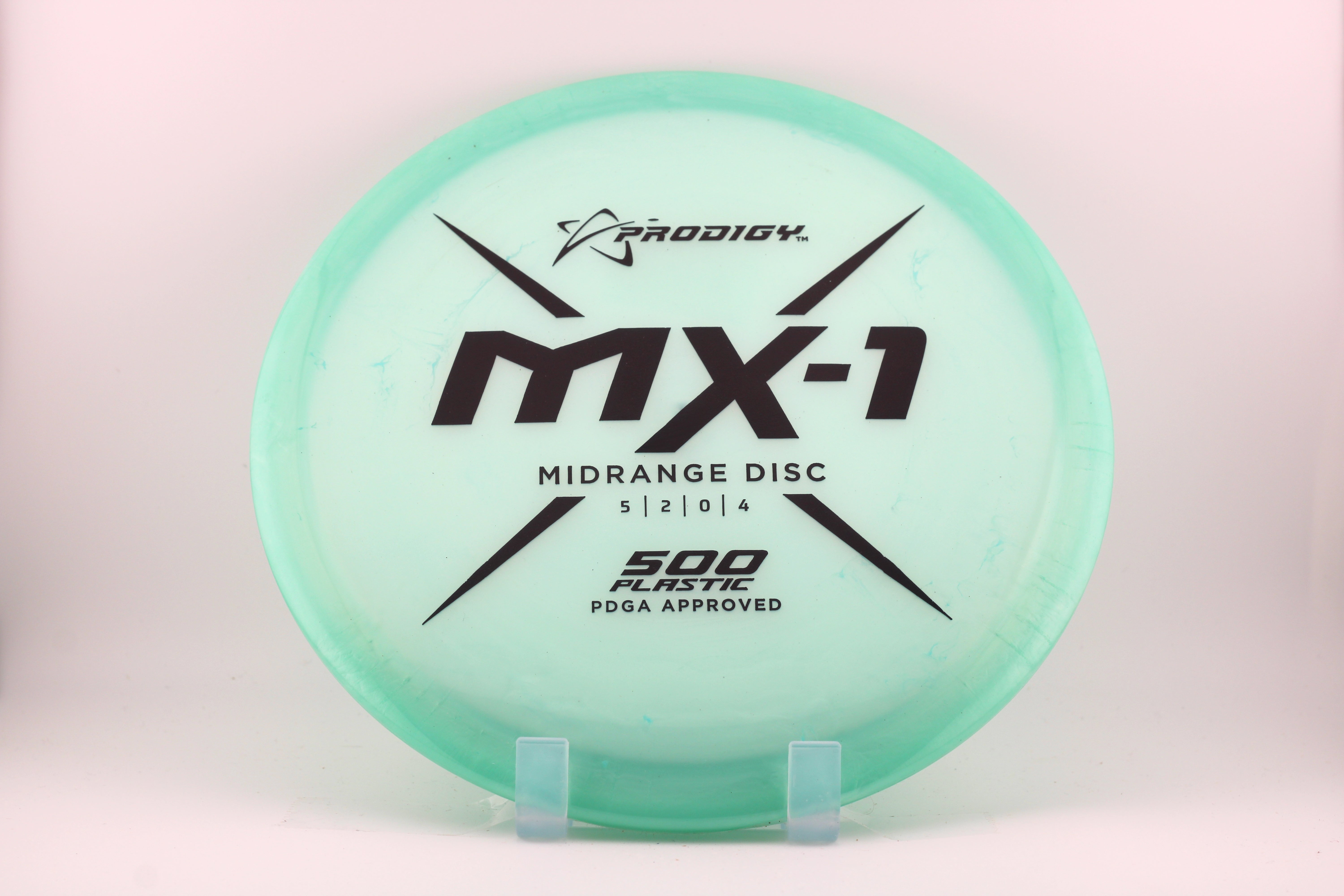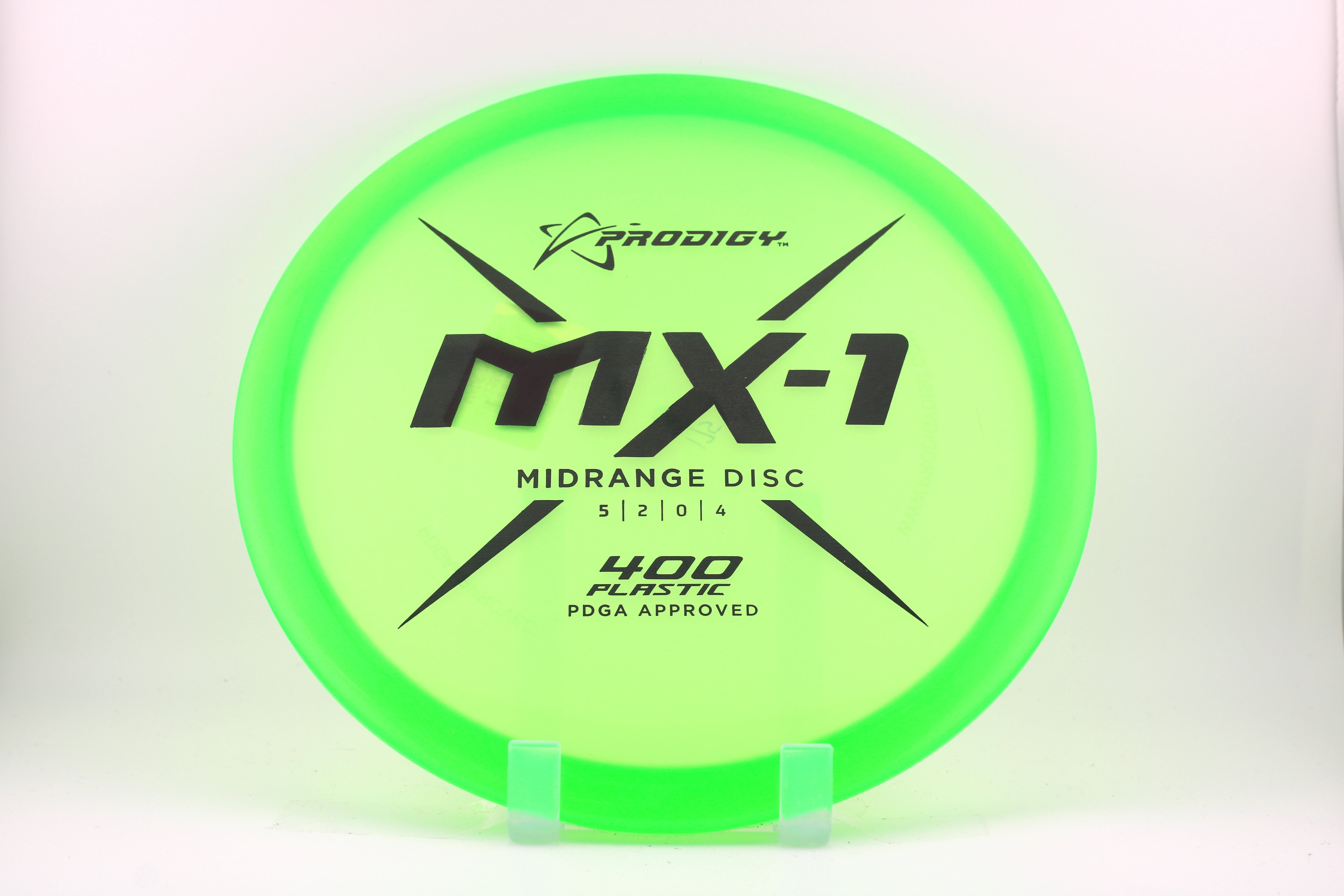 The Prodigy MX-1 is Prodigy's most overstable midrange yet. It is designed to have a predictable finish no matter the angle of release. Whether you throw it sidearm or backhand, the MX-1 can handle power and the wind with no problem at all. In the hand, it feels similar to a beaded disc but it doesn't actually have a bead. Its diameter is slightly smaller than traditional midrange discs.