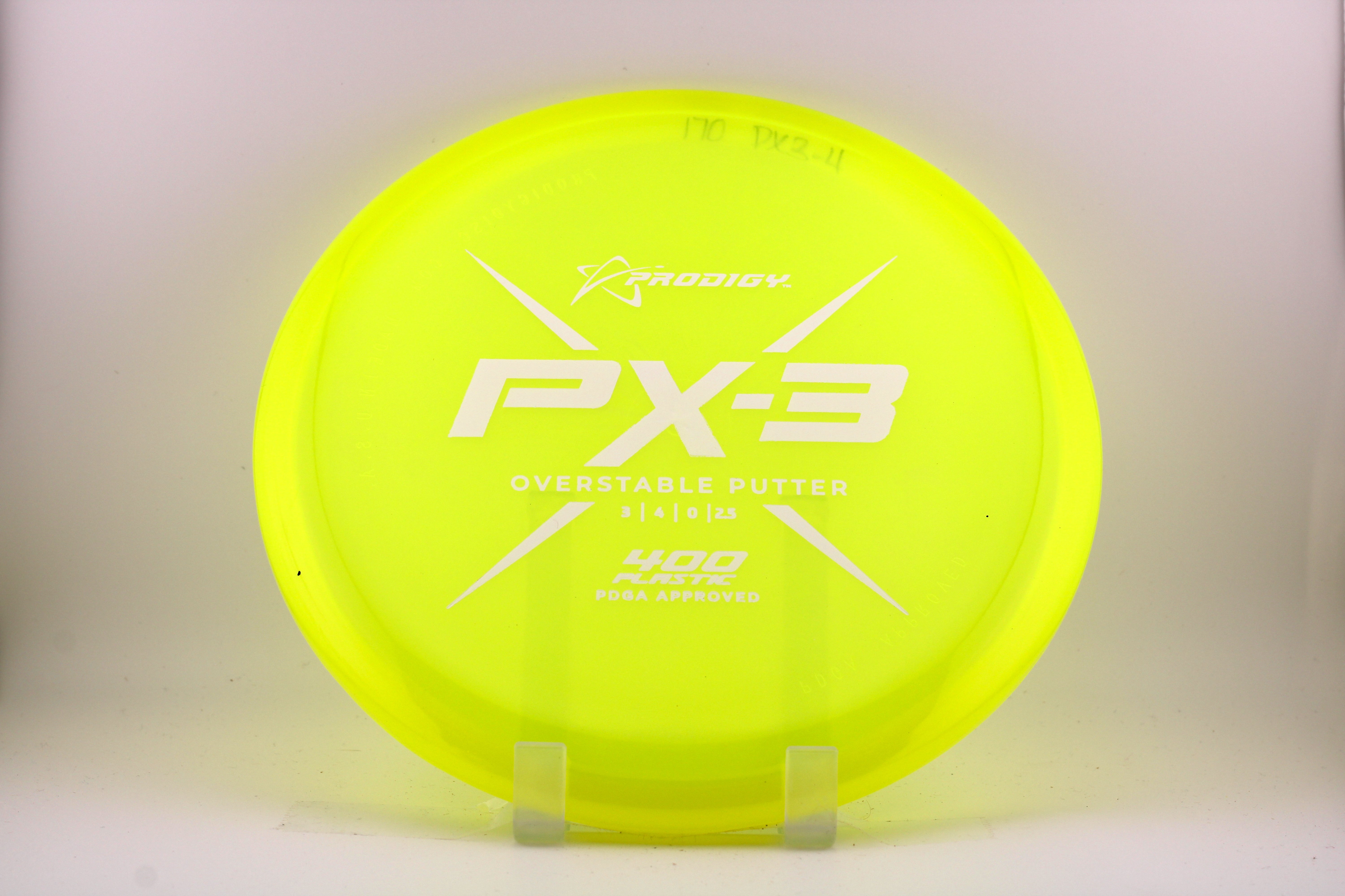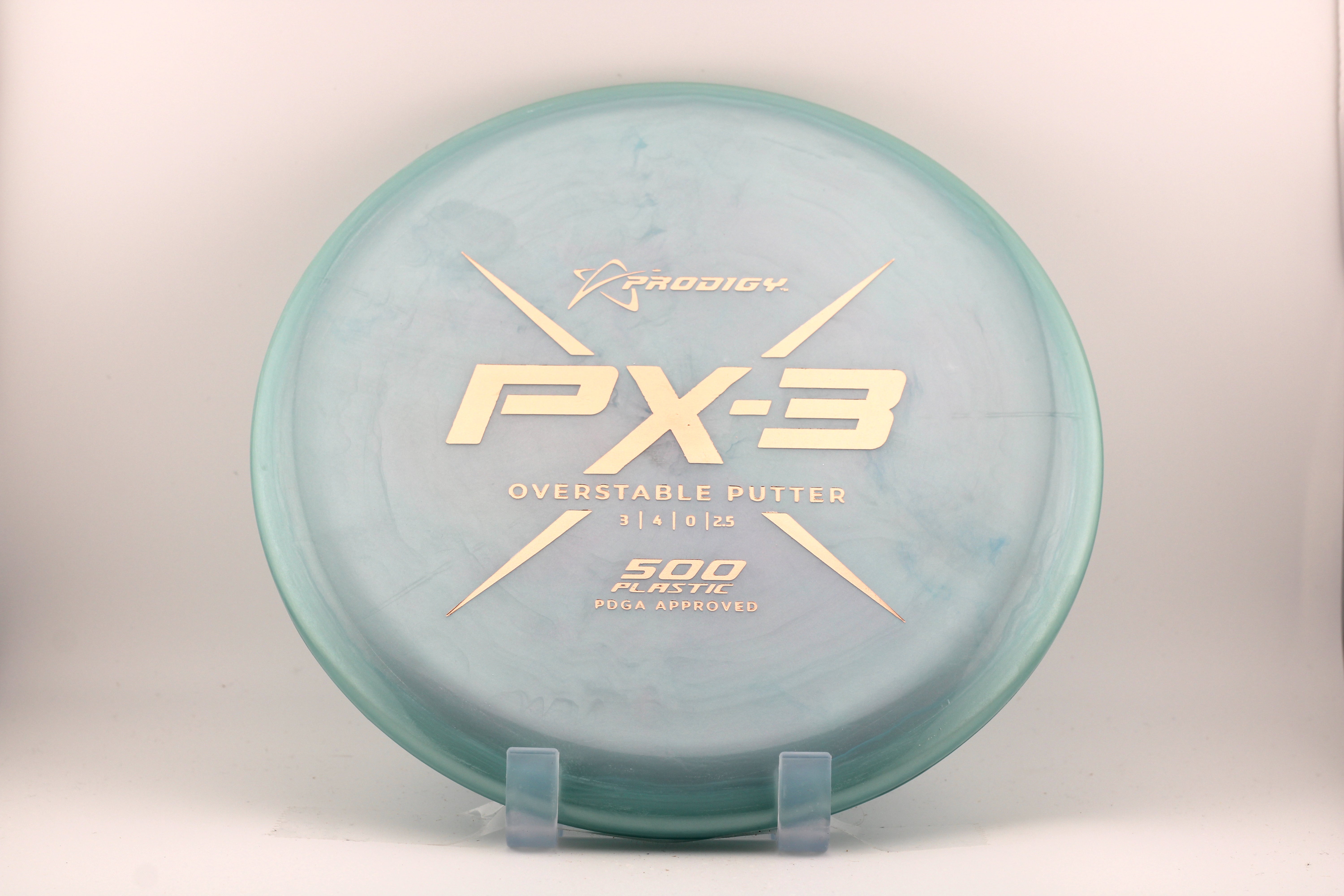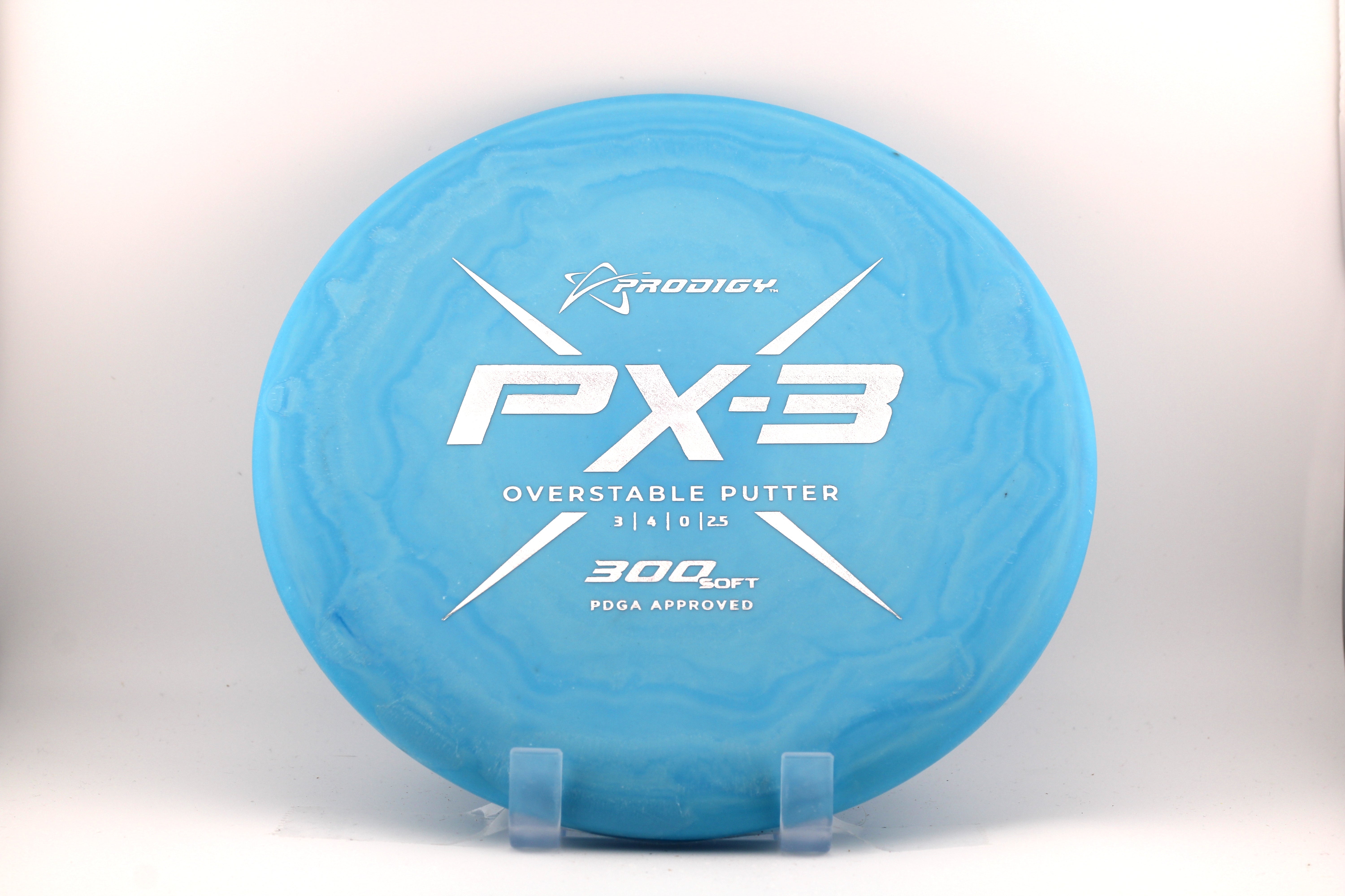 The PX-3 is an overstable putter with a big bead and flat top. It resists turning when thrown at higher speeds so it is also useful as a throwing putter and for approach shots.