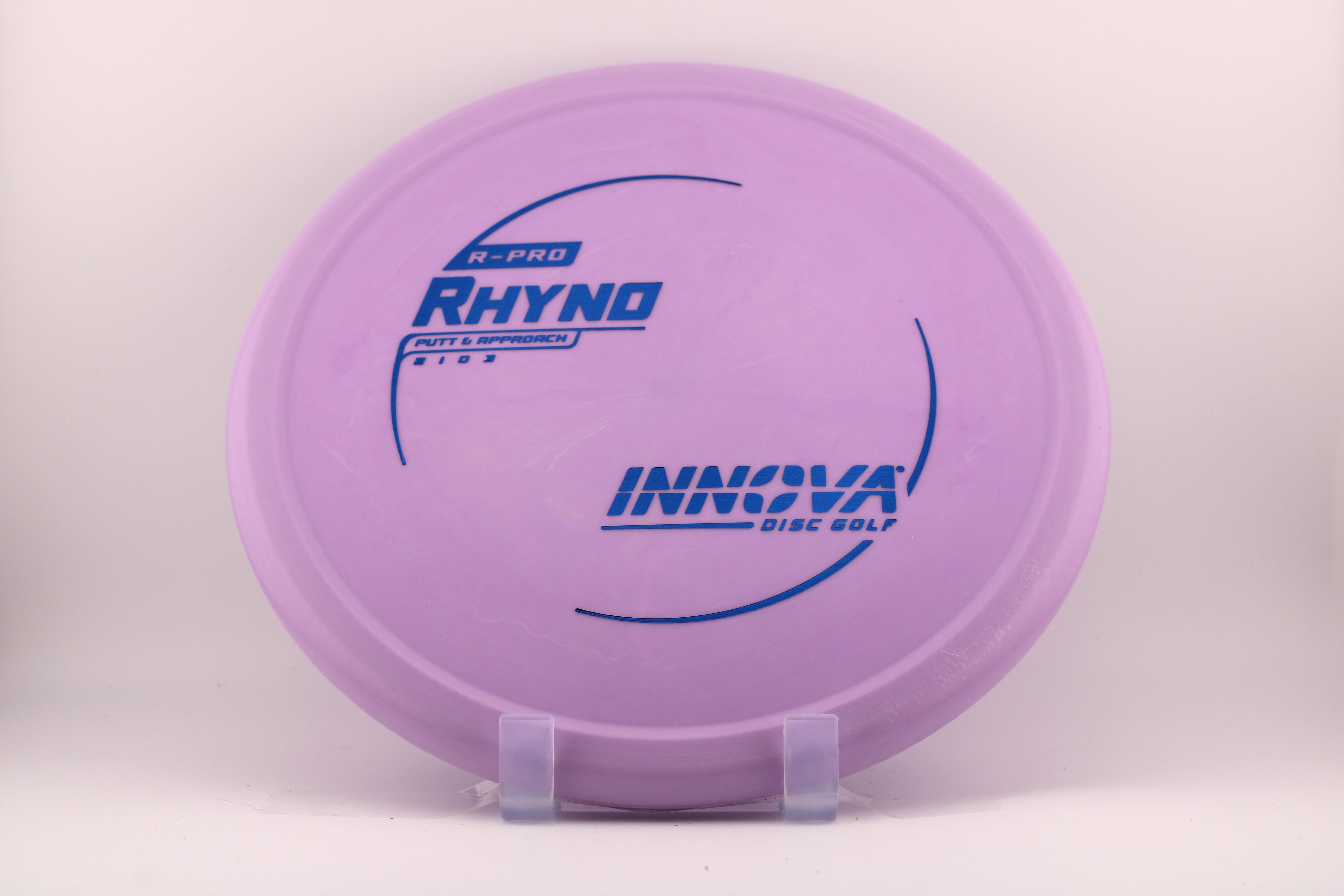 The Rhyno is an overstable putt and approach disc that can handle headwinds. Great for players with lots of throwing power as the Rhyno stops on a dime and stays close to the basket. It is a must have disc for short to medium up shots and putting into the wind. The R-Pro model is also called a "Soft" Rhyno and is made to be super soft and flexible in an extra grippy plastic that grabs the chains.