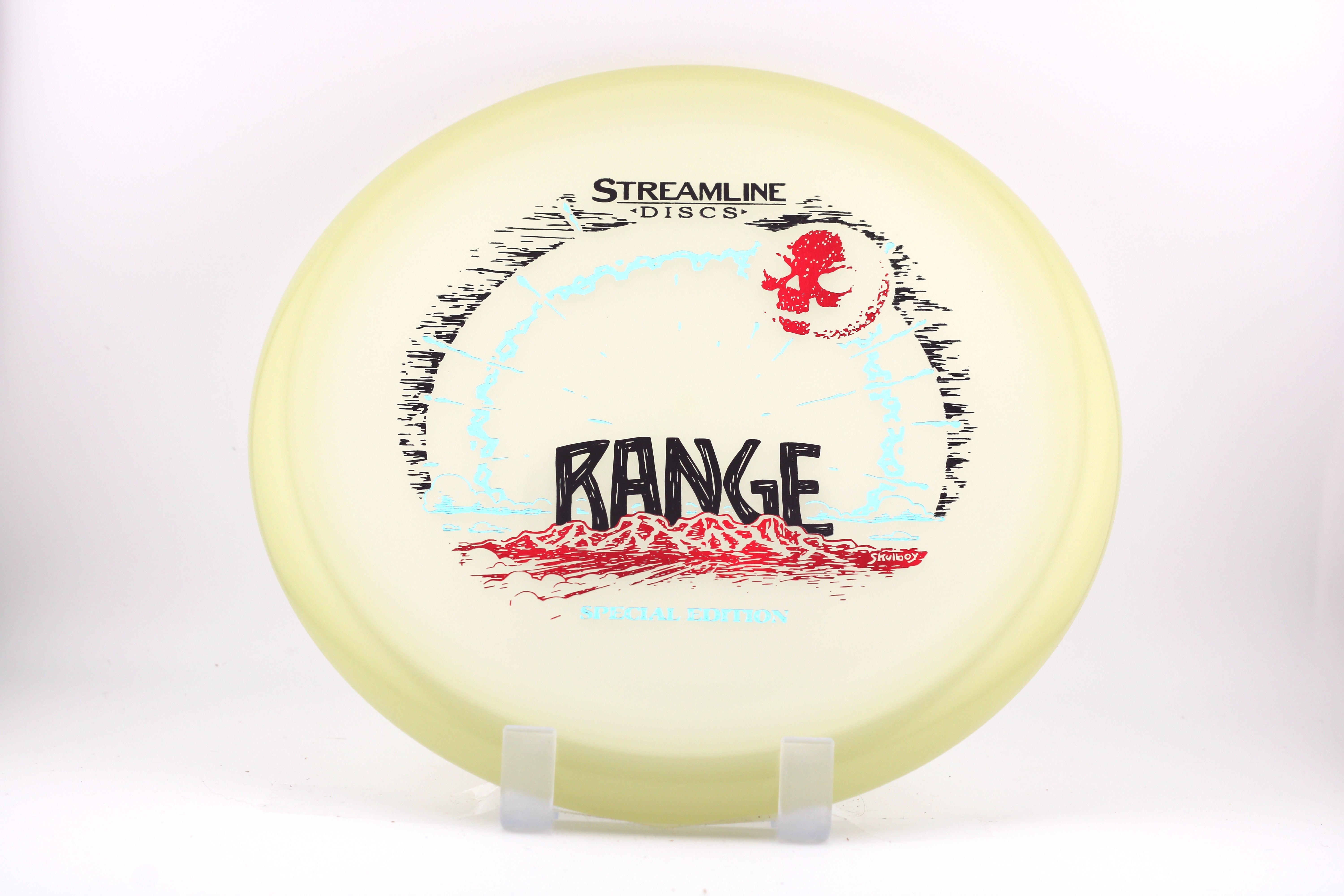 Adorning this new Special Edition release with his signature illustration style, long-time friend of MVP - Skulboy - brings his classic feel to this illustrious Streamline approach disc. The unique glide-reducing profile on the Range sets it apart from the MVP lineup, resulting in a dependable straight-flyer you can reach for when ranging distance is at a premium.