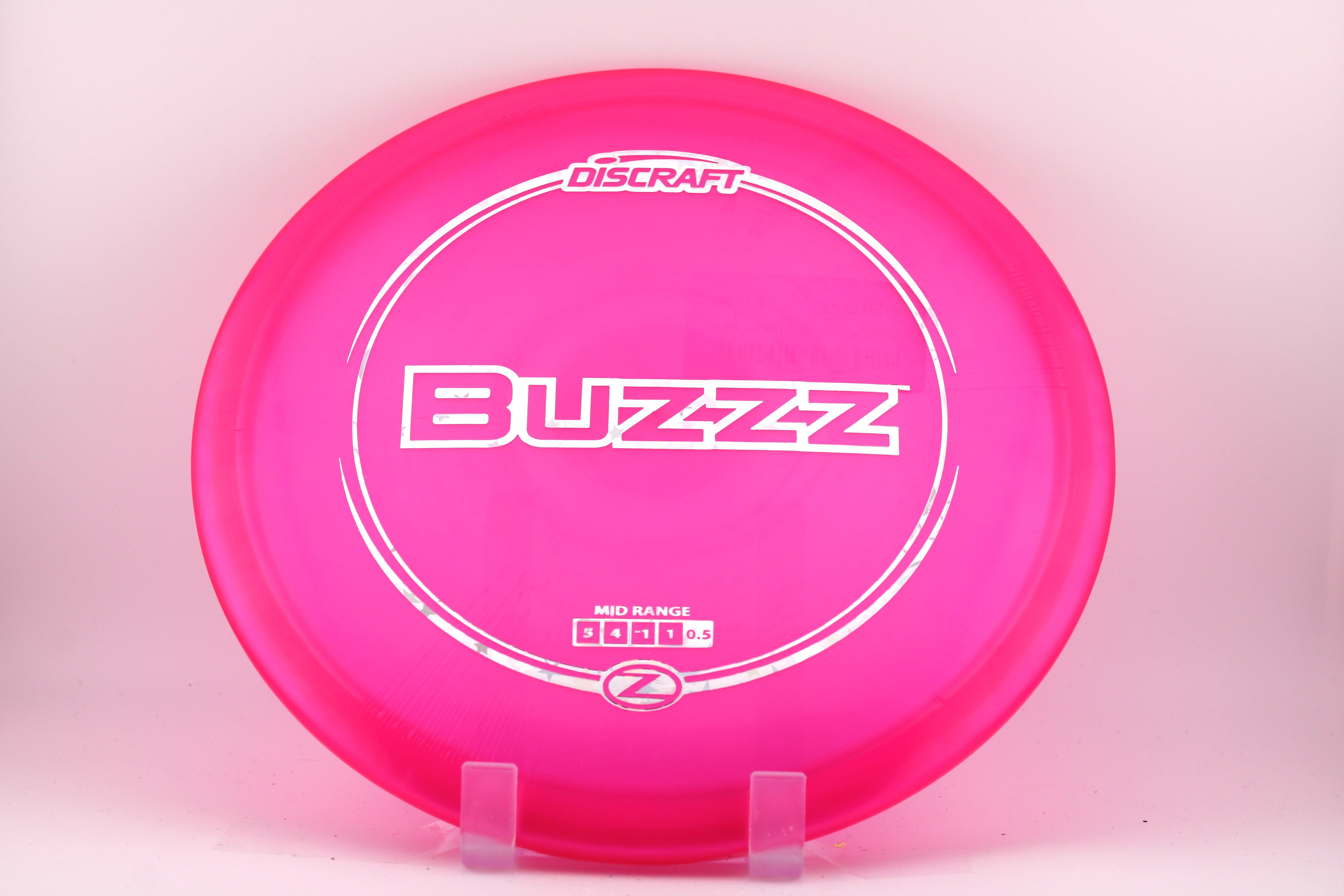 The Buzzz (3 z’s) is one of the most popular midrange discs in the world. This consistent, reliable, and stable disc will perform exactly how you want it to. With powerful throws the Buzzz will hold any line you put on it. With light, level throws, it will fade slightly. This super popular disc can be purchased in all of Discraft's plastics. In base line plastics it has a stability rating of 0. In premium plastic blends this disc is slightly overstable with a Discraft rating of .5.