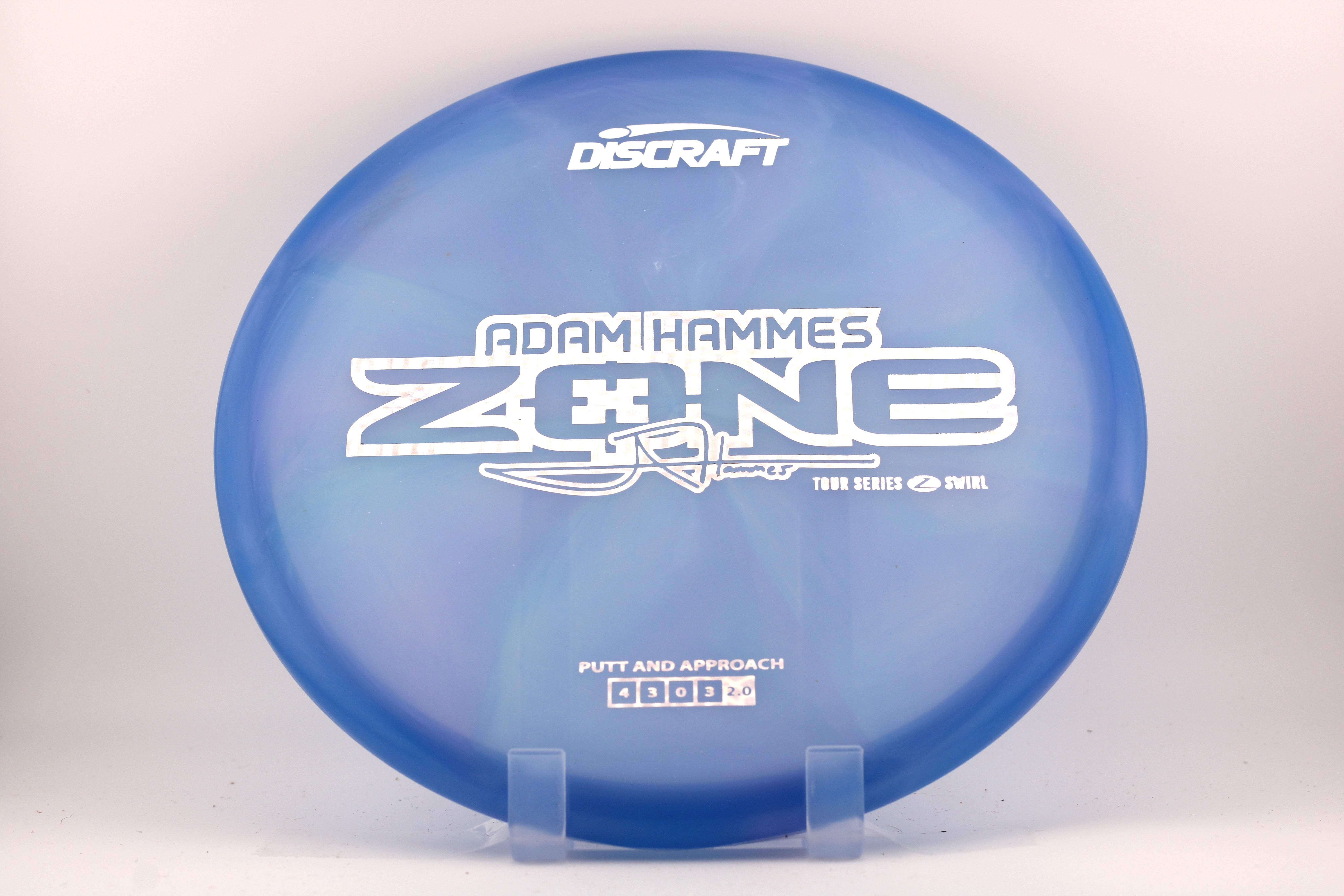 Discraft says this about the mold: “Reliable, overstable, and deadly in the short game—the Zone returns as Adam Hammes’ Tour Series pick. Trusted by pros around the world, it’s built for forehand approaches, flex shots, and headwind putts.”